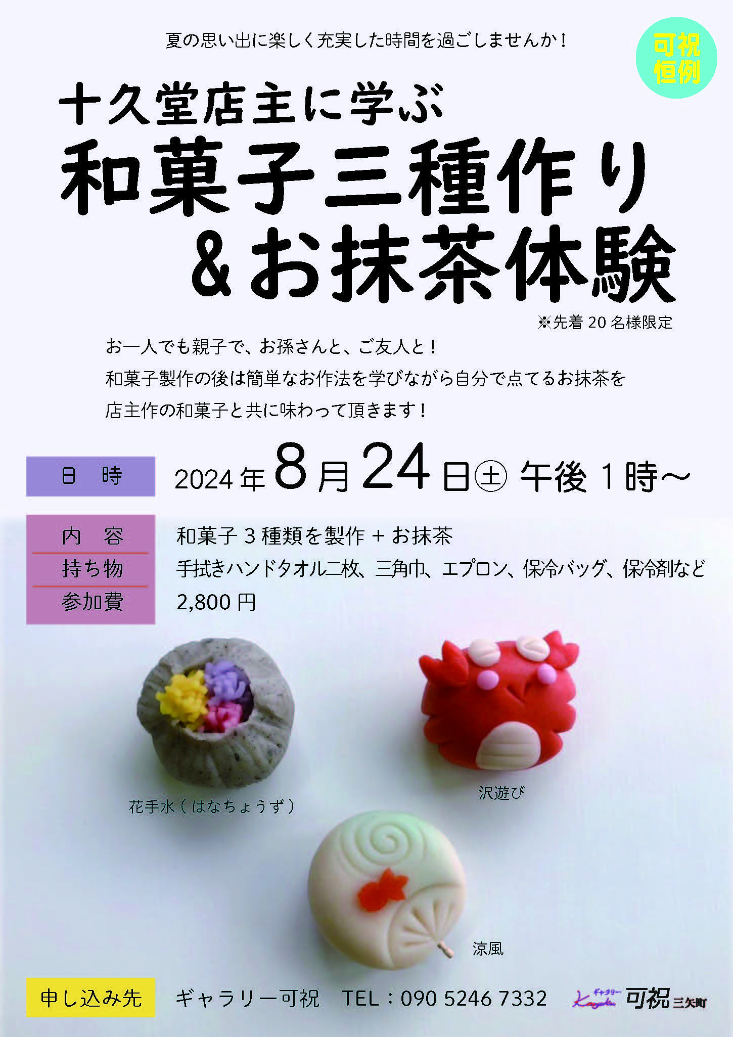 十久堂店主に学ぶ和菓子作り&お抹茶体験を行いました。